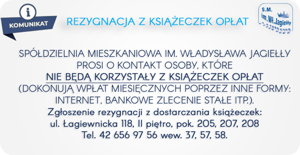 • Dostępna po prawidłowym uzupełnieniu formularza na stronie www.smjagiello.pl/dokumenty-do-pobrania/ i identyfikacji danych przez pracownika Spółdzielni.